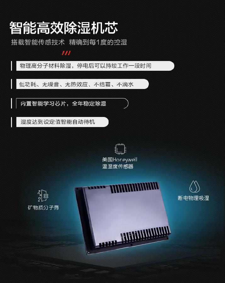 每一款防潮柜都有不同的功率指示,可能很多客户都觉得防潮柜的功率越大,除湿能力就越强。其实这是一个错误的观念。根据防潮柜的工作原理,它是利用高效的吸湿材料进行物理吸湿,其在整个吸湿的过程中是不需要消耗任何外部电力的,除湿能力的强弱是根据吸湿材料本身的结构来决定的,还有吸湿主机的内部风道而决定的。那么防潮柜的功率是什么时候产生的呢,那是因为吸湿材料吸湿饱和之后,无法继续吸湿来降低箱内的湿度值,这个时候就需要电加热来排出吸湿材料吸收的水分,烘干之后就可以继续进行吸湿。综上所述,电子防潮箱的除湿能力和电源的功率不是正比关系,轻量化,低功耗的设计才是防潮柜的选择,不仅可以降低能耗,还可以防止高功率加热产生的意外和延长除湿主机外壳的使用寿命。